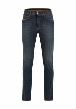 Echte Five-Pocket mit elastischem Komfortbund in strapazierfähigem Light-Denim mit super elastischem High-Stretch. Diese nur 7,5 oz schwere Summer-Denim ist super leicht und damit ideal für warme Sommertage. Dank einer Beimischung von PBT-High-Tech-Faser sind diese Hosen einzigartig strapazierfähig. Das ist gerade bei leichten Sommer-Qualitäten unerlässlich und zeichnet echte Premium-Qualität aus. Dazu kommt, dass diese Hosen dank superelastischem High-Stretch jede Bewegung mitmacht, ohne dass man auch nur einen Hauch von Widerstand spürt. Dieses Modell verfügt über eine normale Leibhöhe und ein sehr schlankes Bein bei schmaler Fußweite. Der Clou: In der rechten Vordertasche ist eine separate Smart-Pocket eingearbeitet, in der man sein Smartphone kratzsicher und schnell griffbereit unterbringen kann.