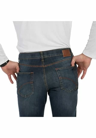 Echte Five-Pocket mit elastischem Komfortbund in strapazierfähigem Light-Denim mit super elastischem HIGH-Stretch. Dieser nur 7,5 oz schwere Summer-Denim ist super leicht und damit ideal für warme Sommertage. Dank einer Beimischung von PBT-High-Tech-Faser sind diese Hosen einzigartig strapazierfähig. Das ist gerade bei leichten Sommer-Qualitäten unerlässlich und zeichnet echte Premium-Qualitäten aus. Dazu kommt, dass diese Hosen dank superelastischen HIGH-Stretch jede Bewegung mitmacht, ohne dass man auch nur einen Hauch von Widerstand spürt. Dieses Modell verfügt über eine normale Leibhöhe und ein sehr schlankes Bein bei schmaler Fußweite. Der Clou: In der rechten Vordertasche ist eine separate Smart-Pocket eingearbeitet, in der man sein Smartphone kratzsicher und schnell griffbereit unterbringen kann.