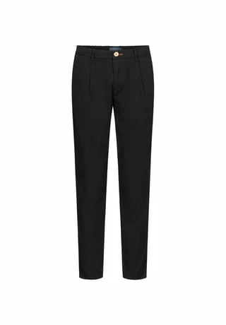 Unsere Chino aus einer Baumwollmischung mit cropped fit. Die Chino hat eine Vintage-inspirierte Passform, die auf der Taille sitzt. Mit Stretchanteil für einen höheren Tragekomfort. Die Chino besticht durch besondere Druckknöpfe und rot abgestzte Nähte.