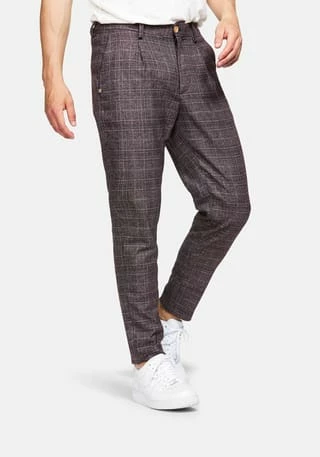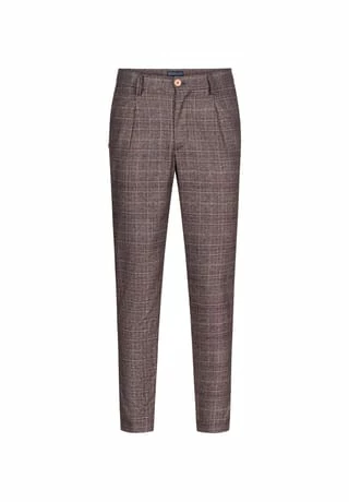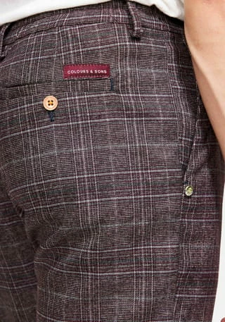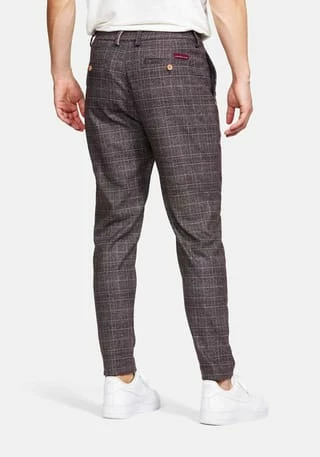 Unsere karierte Chino aus einer Baumwollmischung in rot mit cropped fit. Die Chino hat eine Vintage-inspirierte Passform, die auf der Taille sitzt. Mit Stretchanteil für einen höheren Tragekomfort. Die Chino besticht durch kleine Details, wie zum Beispiel ein ausgefallenener Druckknopf oder farblich hervorstechende Knöpfe an den Gesäßtaschen.