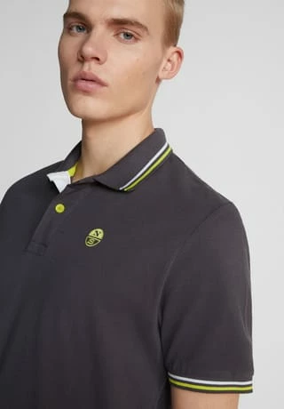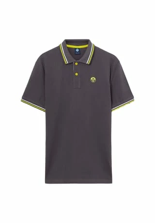 Poloshirt aus Bio-Piqué mit kurzen Ärmeln und Knopfverschluss. Logoaufnäher auf der Brust und Schriftzug auf der Unterseite des Kragens.
