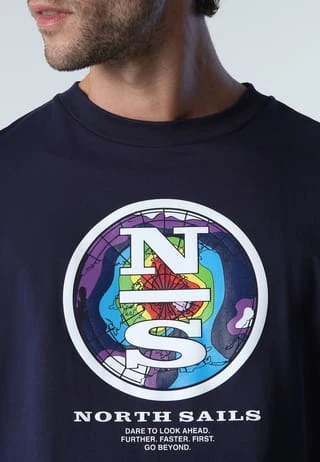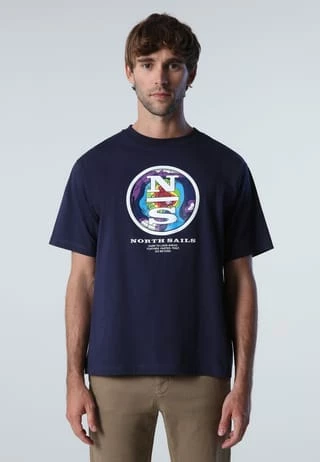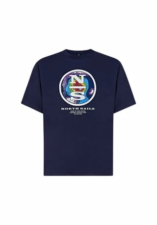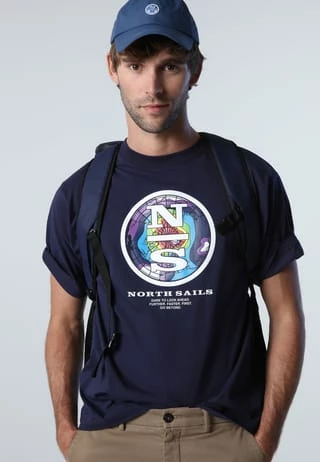 T-Shirt aus Bio-Baumwoll-Jersey mit Rundhalsausschnitt und kurzen Ärmeln. Bequeme Passform mit grafischem Aufdruck und North Sails-Tag an der Seite.