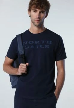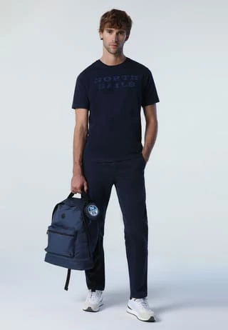 T-Shirt aus Bio-Jersey mit Rundhalsausschnitt und kurzen Ärmeln. Mit einem gummierten North Sails-Aufdruck auf der Vorderseite.