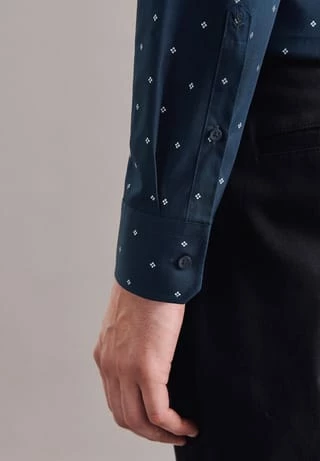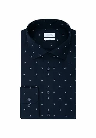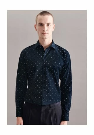 Maskuline Ästhetik: Ihre Silhouette wird stilvoll inszeniert mit dem Business Hemd von Seidensticker. Popeline wird mit hoher Dichte gewebt und ergibt daher ein besonders widerstandsfähiges Material. In Kombination mit 100% Baumwolle ist er perfekt für pflegeleichte Business-Outfits. Mit einem besonders figurbetonten Schnitt liegt das Business Hemd in der Passform X-Slim extra nah am Körper an. Durch das Druck-Muster ist Ihr neues Kleidungsstück elegant und zugleich modisch. Smarte Modernität mit formellen und legeren Aspekten zeichnet dieses Hemd von Seidensticker aus. Dank dem Kentkragen wird der universelle Business-Charakter betont. Ein echtes Highlight aus der Herbst/Winter Kollektion 2021!