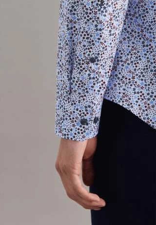 Das shaped fit Hemd hat einen leicht gespreizten Kentkragen mit feiner Steppung.