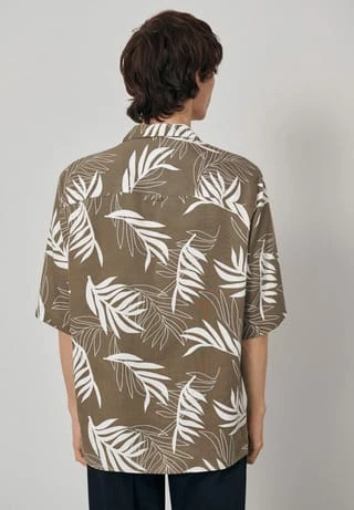 Relaxed Fit Hemd – softe Tencel Qualität, Kurzarm. Reverskragen, Allover-Druck und leicht gerunderter Saum.