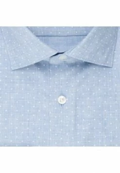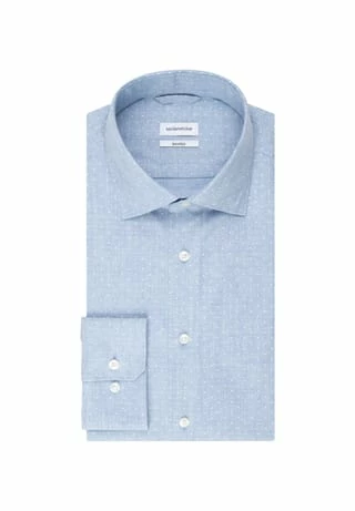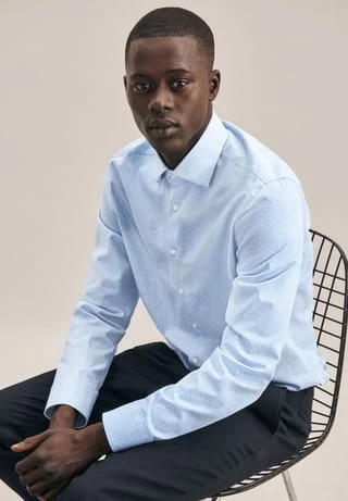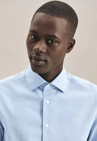 Das shaped fit Hemd hat einen leicht gespreizten Kentkragen mit herausnehmbaren Kragenstäbchen und feiner Steppung.