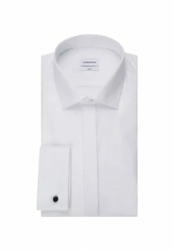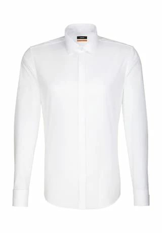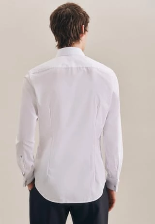 Business-Hemd in schmaler Passform und bügelfreier Popeline-Webart aus der Seidensticker Kollektion. Das unifarbene Design überzeugt mit stilechter Note und zeitgemäßer Eleganz. Die Umschlag-Manschetten und der maskulin gestaltete Kent-Kragen setzen dabei modische Akzente. Dazu rundet die verdeckte Knopfleiste das charismatische Profil gekonnt ab.