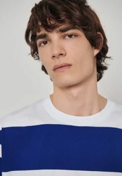 Oversized Fit T-Shirt – softe Plain-Knitted-Jersey-Qualität. Rundhalsausschnitt und Streifen Design.
