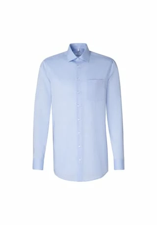 Das Regular Herren-Hemd von Seidensticker überzeugt mit einer monochromen Gestaltung und vermittelt so edlen Purismus. Bügelfreies Chambray-Gewebe aus Baumwolle ist bei diesem Hemd ein absoluter Komfort-Garant, der bequeme Schnitt garantiert zusätzlichen Komfort und eine perfekte Passform. Das zeitgemäße Gesamtkonzept wird durch smarte Details wie dem Business Kent-Kragen, der Brusttasche und den schimmernden Knöpfen unterstrichen. Mit extralangem Arm.