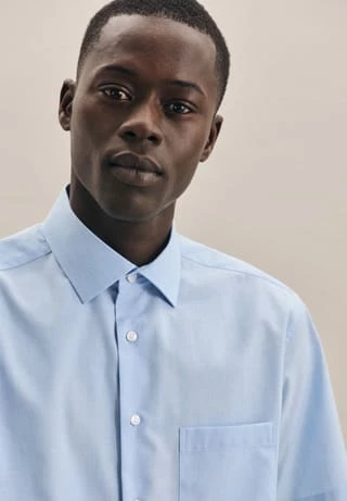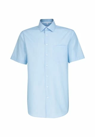 Kennzeichnend für den modernen Look dieses Regular Herren-Hemdes von Seidensticker sind das dezente Streifen-Muster und der kontrastive Ausputz am Business Kent-Kragen und der Knopfleiste. In Szene gesetzt wird die maskuline Linie durch den bequemen Schnitt, der in Kombination mit dem bügelfreien Mille Rayé-Gewebe aus reiner Baumwolle besten Tragekomfort und optimale Bewegungsfreiheit garantiert. Mit kurzen Ärmeln.