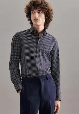 Maskuline Ästhetik: Sorgen Sie für ein stilvolles Erscheinungsbild mit dem Business Hemd von Seidensticker aus der “SMART ESSENTIALS” Kollektion. Ob Freizeit, Büro, Veranstaltungen oder Homeoffice – es ist ein eleganter Klassiker, der durch schlichte Eleganz überzeugt. Popeline wird mit hoher Dichte gewebt und ergibt daher ein besonders widerstandsfähiges Material. In Kombination mit 100% Baumwolle ist er bestens geeignet für pflegeleichte Business-Outfits. Mit der Passform Shaped ist das Business Hemd figurbetont und doch nicht so eng anliegend. Das schicke Druck-Muster ist eine stilvolle Ergänzung. Smarte Modernität mit formellen und lockeren Aspekten prägt dieses Hemd von Seidensticker. Hervorragend hervorgehoben wird der universelle Business-Charakter durch einen Kentkragen. Ein besonderes Stück aus der Herbst/Winter Kollektion 2021!