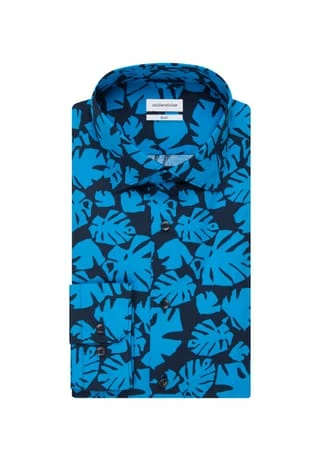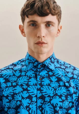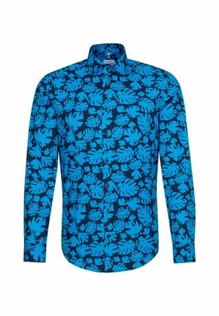 Dieses Slim Herren-Hemd von Seidensticker überzeugt mit schlankem Light Kent-Kragen und lebhaftem Blättermotiv im Allover-Print. Der körpernahe Schnitt betont die Silhouette, die softe Popeline-Baumwolle bietet besten Tragekomfort und eine angenehme Haptik.