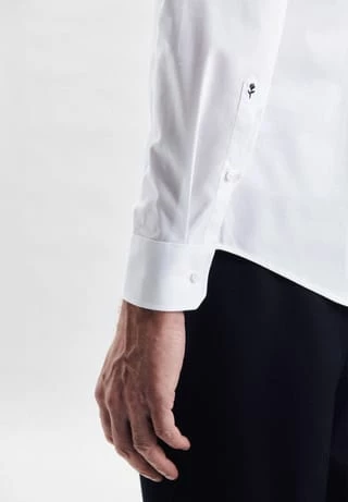 Maskuline Ästhetik: Das Business Hemd von Seidensticker erweitert Ihre Garderobe um ein vielseitig einsetzbares Kleidungsstück. Popeline wird mit hoher Dichte gewebt und ergibt daher ein besonders widerstandsfähiges Material. In Kombination mit 100% Baumwolle ist er perfekt für pflegeleichte Business-Outfits. Mit dem besonders figurbetonten Schnitt liegt das Business Hemd in der Passform X-Slim sehr nah am Körper an. Das Uni-Muster mit Patch in Kragen und Manschetten verleiht dazu die passenden modischen Nuancen. Dieses Hemd verkörpert zeitlose Eleganz mit modernem Schliff. Dank dem Kentkragen wird der universelle Business-Charakter betont. Ein edler Hingucker aus der Herbst/Winter Kollektion 2021!