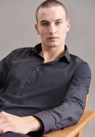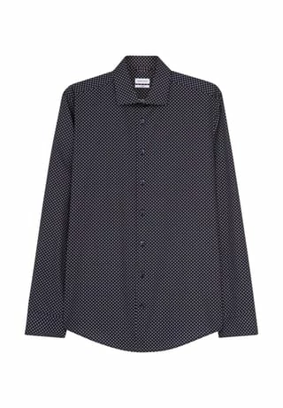 Das extra slim fit Hemd hat einen leicht gespreizten Kentkragen mit feiner Steppung.