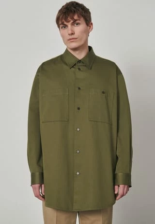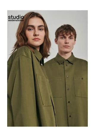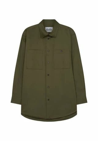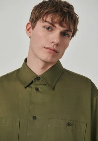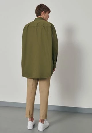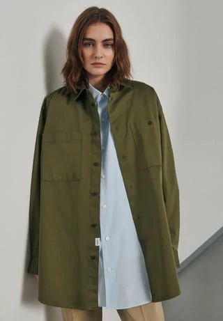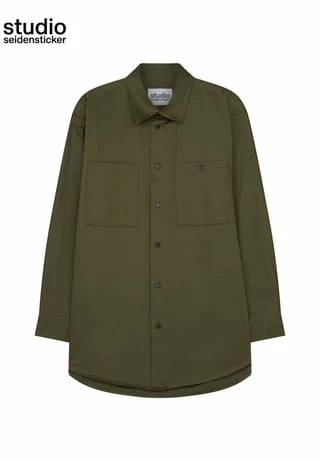 Oversized Fit Shirt – softe Satin-Qualität. Kentkragen, Streifenmuster und Brusttasche.