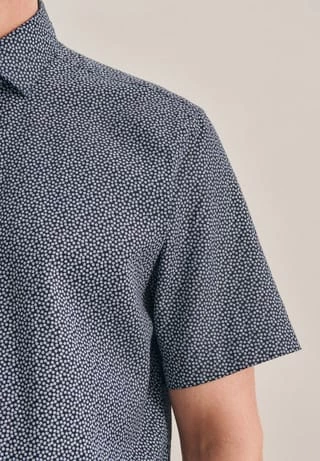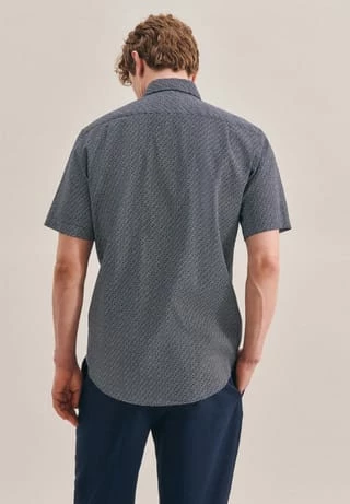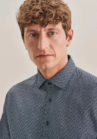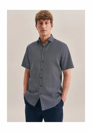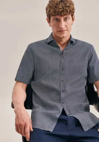 Softes Leinen-Gewebe bildet die Basis dieses Seidensticker Regular Herren-Hemdes, das durch das Allover-Dessin in farbharmonischer Gestaltung ergänzt wird. Dazu verfügt es über einen Light Kent-Kragen, der für klassisches Flair innerhalb des zeitgemäßen Designs sorgen. Die gerade Passform akzentuiert die maskuline Silhouette, das Gewebe sorgt für besten Komfort. Kurze Ärmel sorgen für einen perfekten Sitz. Ein Hemd, das sich besonders an warmen Tagen fürs Office eignet.
