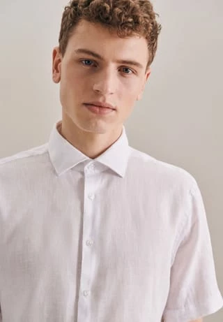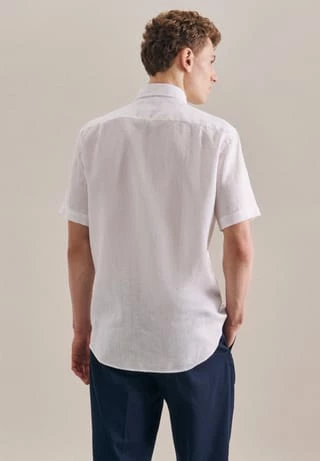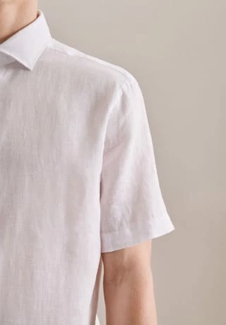 Klassisch, formell und gleichzeitig modern: Das wertige Seidensticker Regular Herren-Hemd aus Leinen überzeugt durch die softe Qualität und beweist, dass stilvolle Hemden komfortabel sein können. Kurze Ärmel und die gerade Passform sorgen für einen idealen Sitz, die zwei Abnäher im Rücken unterstreichen den Sitz. Moderne Assoziationen ruft das Konzept durch den Light Kent-Kragen hervor, der das Business-Konzept gelungen ergänzt.