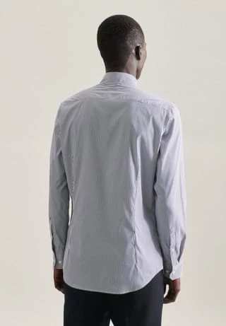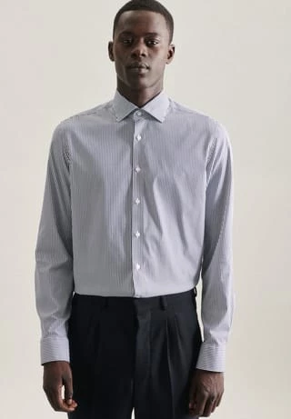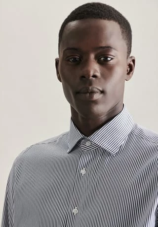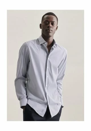 Maskuline Ästhetik: Sorgen Sie für ein stilvolles Erscheinungsbild mit Performancehemd von Seidensticker aus der “SMART PERFORMANCE” Kollektion. Er kann in der Freizeit, im Büro oder auf Reisen getragen werden. Die Webart Twill aus Kunstfasermischung ist besonders hochwertig gewebt, was sie komfortabel zu tragen und mit schräg umlaufender Struktur außerordentlich griffig macht. Als Slim fit ist Performancehemd recht schmal und figurbetont. Das attraktive Streifen-Muster verleiht dazu die passenden modischen Nuancen. Balanceakt zwischen klassischem Look und modernen Aspekten: das smarte Seidensticker Hemd. Hervorragend unterstrichen wird der universelle Business-Charakter durch einen Kentkragen. Performancehemd erfüllt unsere eigenen hohen Anforderungen an unsere Produkte in Bezug auf nachhaltige Rohstoff-Verwendung, verantwortungsvolle Herstellung und plastikfreie Verpackung. So können auch wir soziale Verantwortung übernehmen. Ein besonderes Stück aus der Herbst/Winter Kollektion 2021!