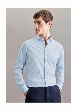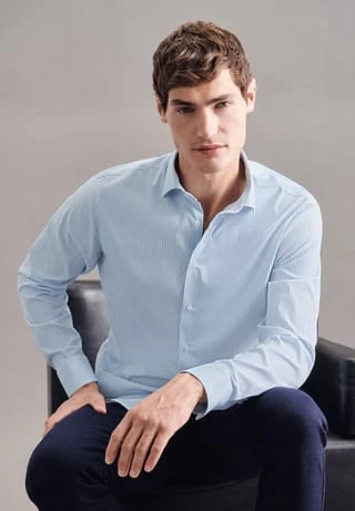 Maskuline Ästhetik: Ihre Silhouette wird stilvoll inszeniert mit Performancehemd von Seidensticker aus der “SMART PERFORMANCE” Kollektion. Er ist ein perfekter Begleiter, der sich ideal für Freizeit, Reisen oder Büro eignet und zu vielen unterschiedlichen Looks passt. Der besonders hochwertig gewebte Twill ist aus Kunstfasermischung, komfortabel zu tragen und mit schräg umlaufender Struktur außerordentlich griffig. Im Taillenbereich extra schmal geschnitten, sorgt Performancehemd in X-Slim für einen außerordentlich figurbetonten Schnitt. Das schicke Streifen-Muster macht ihn zu einem absoluten Must-have. Smarte Modernität mit formellen und legeren Aspekten zeichnet dieses Hemd von Seidensticker aus. Ein Kentkragen unterstreicht den universellen Business-Charakter. Ein edler Hingucker aus der Herbst/Winter Kollektion 2021!
